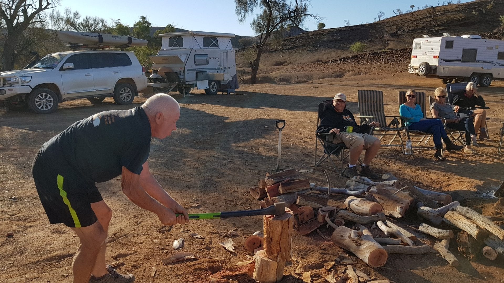 First thing we do, is to look at the best Position, as far as what you are going to look at first thing in the morning. Whatever you look at first thing in the morning will be good on the eyes for the rest of the day. Always try & get a level site & a good clear spot for the camp fire.