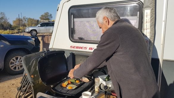 After leaving Peake ruins we headed to William Creek. Good pub to have lunch. After William Creek we headed down to Coward Springs, where there are some thermal springs there. It’s a little Oasis out in the middle of know where. You can see Peter George cooking breakfast. A beautiful place to stop on the Oodnadatta track.