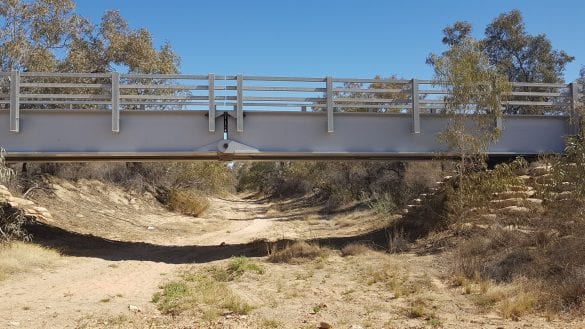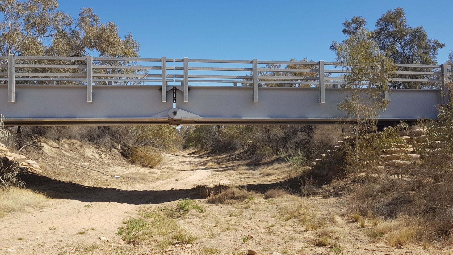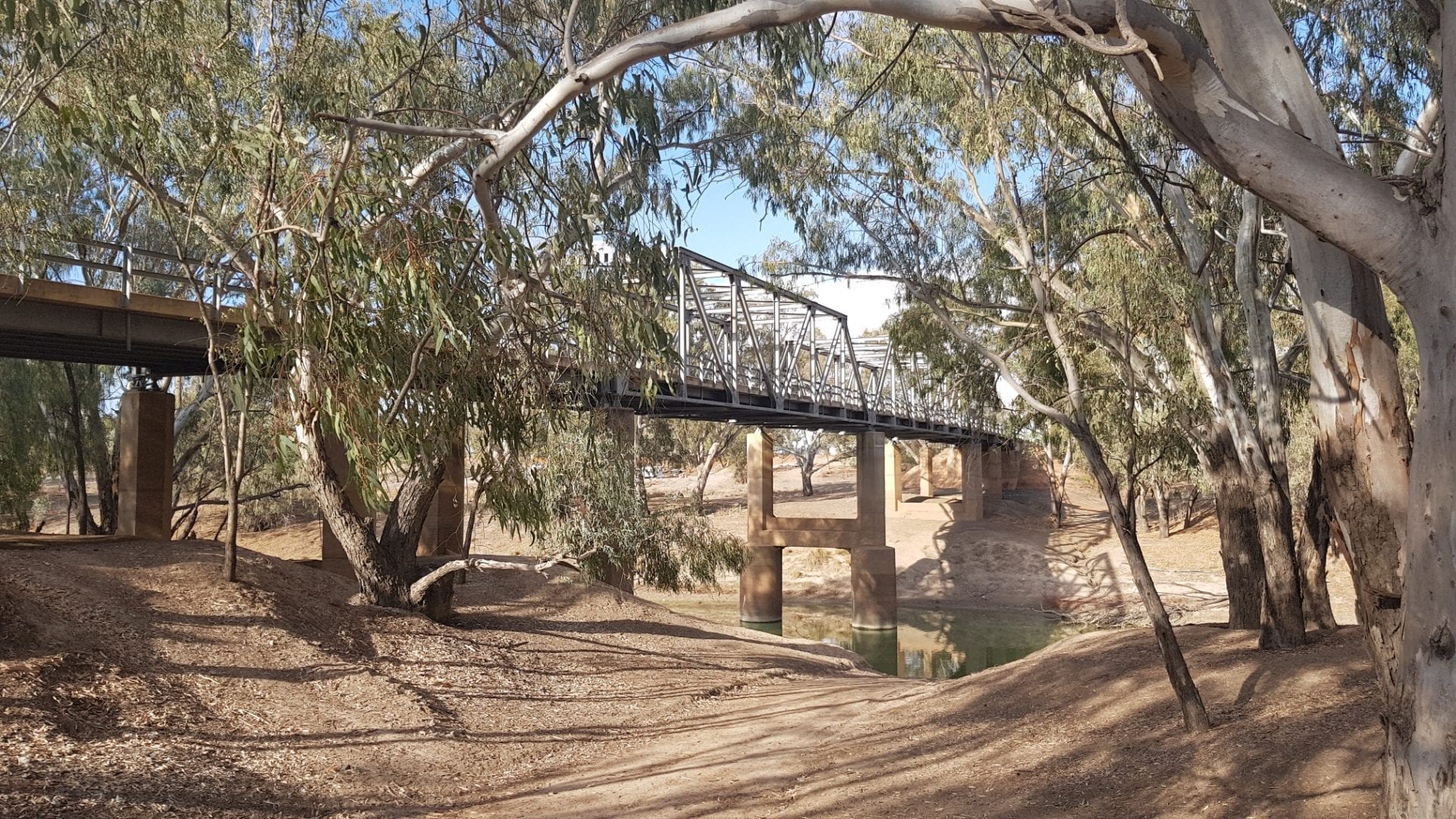 Oodnadatta, down to the Algebuckina Bridge & campsite and ruins. The the bridge, ruins & the camp site are on the old Ghan railway and is one of the larger of the suspended Bridge along the Oodnadatta track.