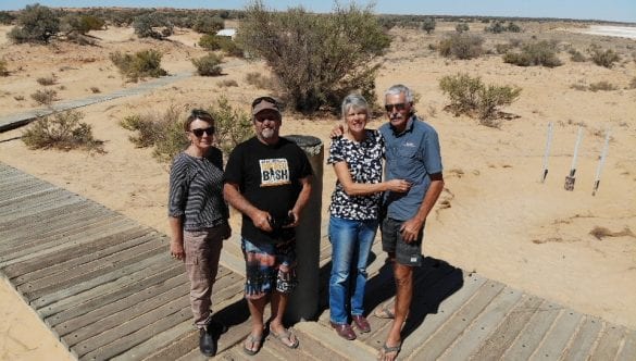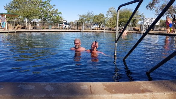 Know we head up the Strzelecki track to Montecollina Bore. The bore is a natural spring of hot water coming out of the ground & into the large pond. We were there for 2 nights with Peter and Claire George. It was good time for Chris to do some washing. While we were there, on our last night we had around 20 camels come into the water hole opposite our campsite, it was dark. It was so dark we could not see them until we put a torch on them. When they first started drinking, what a horrible noise!