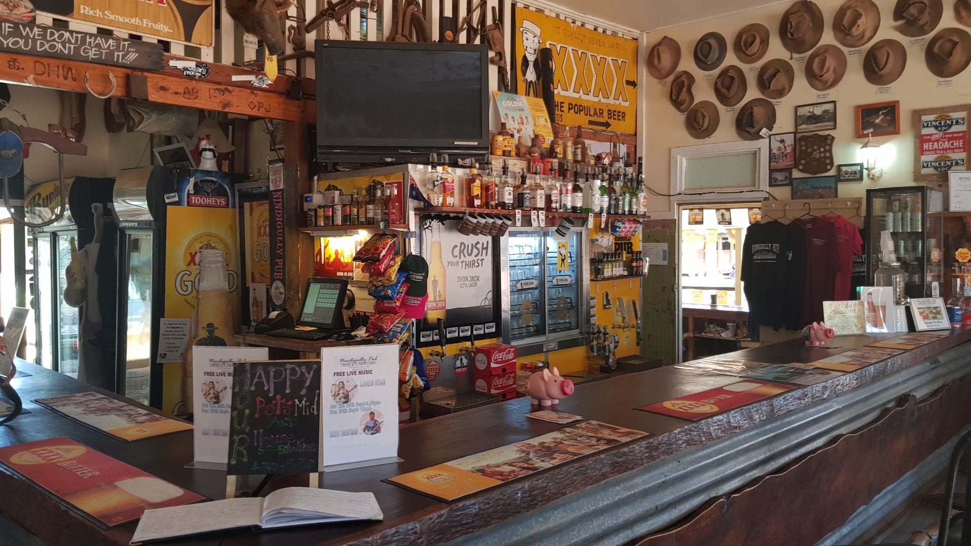 Arrived in Hebel, where the major attractions are the pie shop and the pub. I’ll take you for a bit of a guided tour through the pub, then we headed to Lightning Ridge.