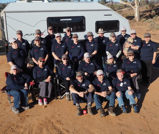 The next day we wound our way to the manager’s house to pay and get track notes before choosing our path for the day. Many took the opportunity to explore the historic tracks out to Mt Hack and the old Warraweena homestead while others explored the Sliding Rock mine site and surrounding creek lines. The class of 2018 photo was taken, using Ian and Madelaine Baker’s Matrix as the backdrop. Nobody had a drone so I used our squeezebox ladder to get high enough to fit everyone into shot, along with a wide-angle lens. Ross was awol to begin with and then Alex disappeared so one or the other may be missing from this photo! (Go to the end of this saga to see the class photo.) A fitting end to another great and different day.