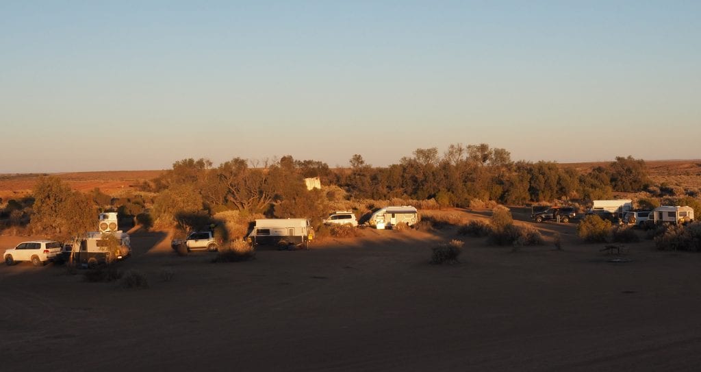 Because we had already aired down to drive safely from Alpana to the Prairie Hotel via Parachilna gorge, we were ready by mid-afternoon to drive the short bitumen leg to the turnoff, followed by 38 km or so of dusty, rocky track and through several creek crossings to Warraweena sanctuary and our campsite at Sliding Rock. Everyone arrived with daylight to spare and no issues with cars or campers. The dust sealing of both had been thoroughly tested with no failures found. Campfire lit, wine in hand, we gathered around to revisit what had been one of those more interesting days of travel.